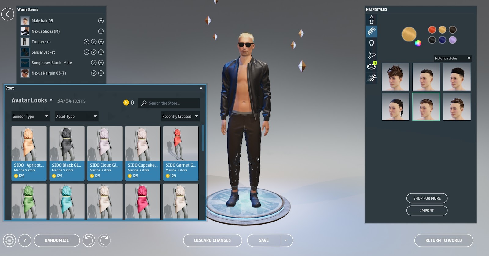 You’ll now be able to customise your gender, hair, outfit and accessories. More items can be found in the Sansar store by clicking the Shop for more button.